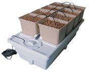 The issues involved with germination and transplanting crops into and out of ebb and flow systems has already been covered above, so we won't rehash that here. Happily, relatively easy workarounds exist for germinating plants elsewhere, such as in rockwool grow cubes, and then transplanting them into an ebb and flow system for the bulk of their life cycle. One interesting twist on this idea, however, is to use a dedicated flood and drain container specifically for germination purposes, then transplanting young plants out of the germination container and into a different ebb and flow container for further growth and development. Older gardening books talk about having dedicated seedling beds which are specifically managed for germination. They might have a cold frame over them or other climate control to aid in creating favorable germination conditions. Then as the seedlings develop a root system, they are lifted (several of my gardening books talk about "pricking" them out of the seedling bed) and transplanted elsewhere. The same system could be used with flood and drain. The seedling container could be filled with a growing media favorable to germination, perhaps sand, perlite/vermiculite, coir, rockwool grow cubes or some combination. A very shallow and frequent irrigation cycle could be set up which kept the bottom watered but didn't reach the growing media surface, so that small seeds weren't displaced by the irrigation cycle (or just put those small seeds in the rockwool cubes). Then as the seedlings grow, they are gently lifted out and transplanted into a different ebb and flow container, which will have the growing media better suited for long-term development. It's an appealing idea.